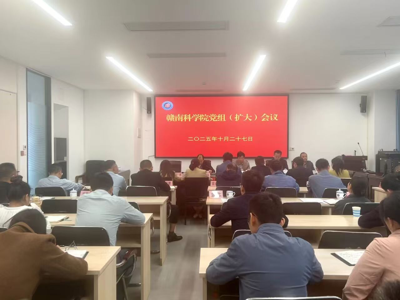 10月27日,赣南科学院召开党组(扩大)会议,专题传达学习党的二十届四中全会、全市领导干部会议精神,研究部署全院学习宣传贯彻工作。院党组书记、院长肖林长主持会议并讲话,在家院领导、直属各单位班子成员、机关全体干部职工参加会议。